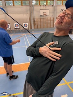 Liikuntahetkenä kokeiltiin jousiammuntaa, joka toi sopivaa rentoutta ja naurua päivän keskelle. Yhdessä tekeminen ja uuden kokeileminen vahvistivat yhteishenkeä entisestään.